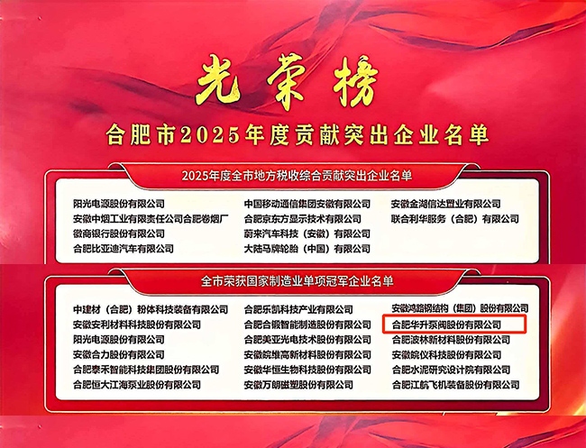 Hefei Huasheng Pumps & Valves Named One of Hefei’s Outstanding Contributing Enterprises for 2025
